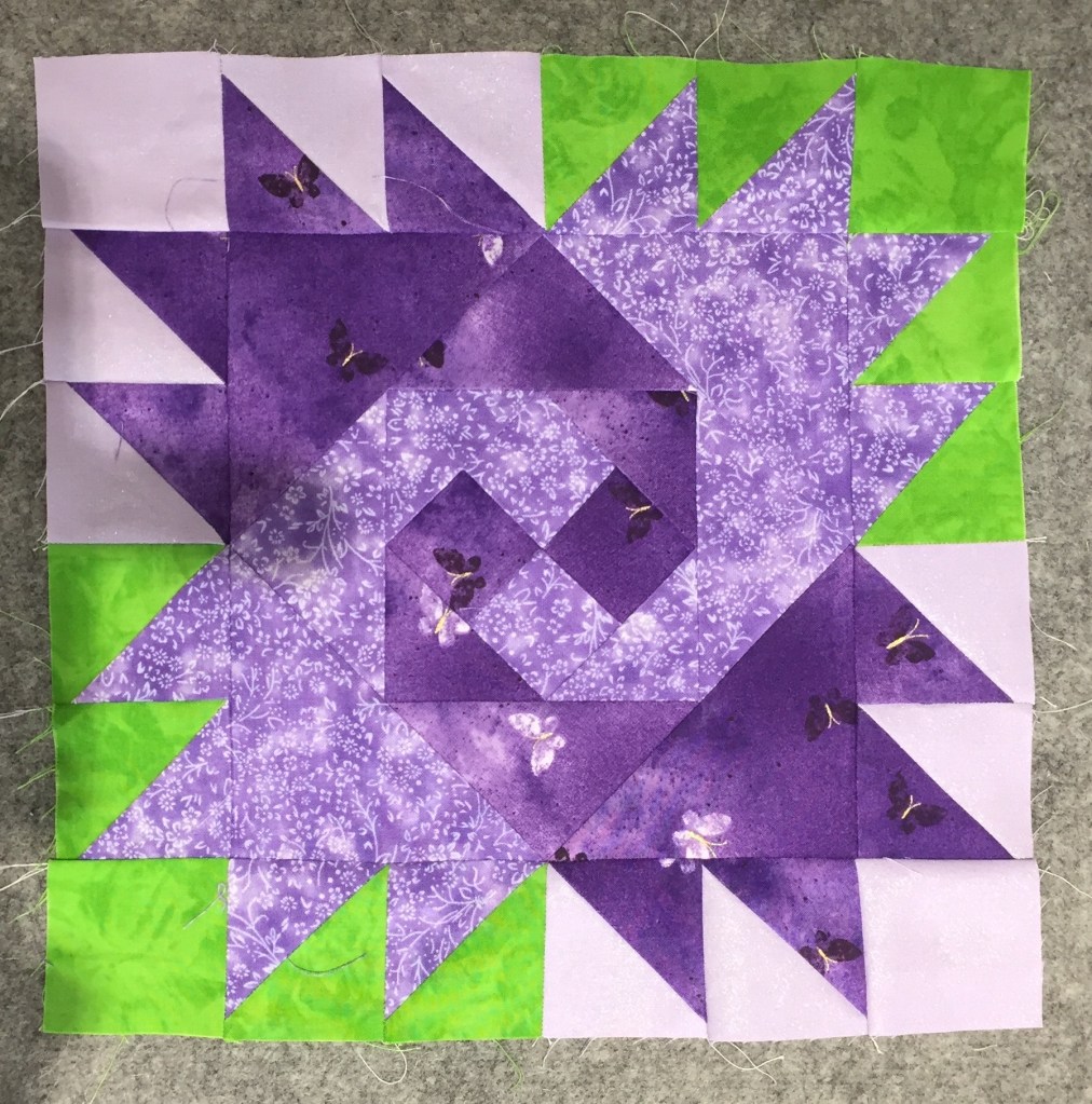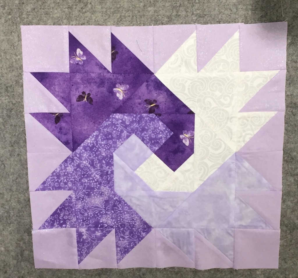 My Modern And Art Quilting group have not been able to meet as usual over the last few months. Consequently this course is on hold. To keep in touch we have been holding regular zoom meetings and this led to a request for a project. We decided on a Block Swap with a difference. We chose a traditional patchwork block – Bears Paw, and the challenge is to merge it with another traditional block to create a brand new one.