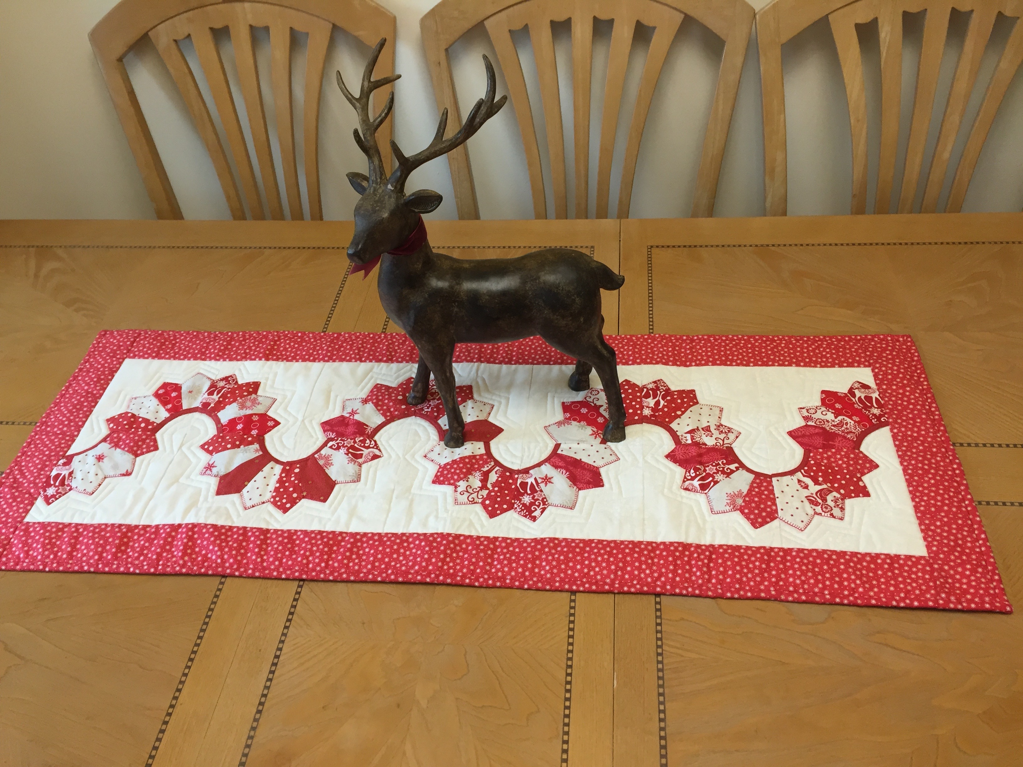 I also had a vey enjoyable zoom session with a friend this week, teaching her how to make a table mat using these methods. Although we can’t be together at the moment we can quilt together. She has sent me this photo of the lovely placemat she made with me. Many thanks to Sue for allowing me to share it with everyone.