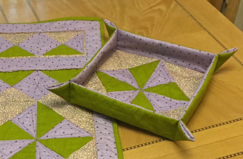 Sometimes, when I am designing projects, I have sample blocks left over. I had a block left from the Newlands table runner pattern, which I thought would make a lovely fabric basket or tray to compliment the table runner. It can have many uses from a bread basket to a cutlery and napkin tray.