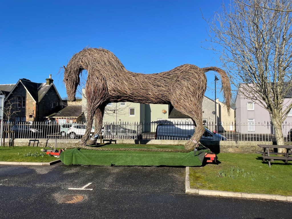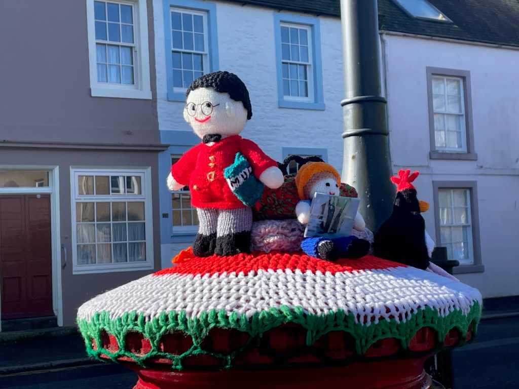 It was a beautiful day for exploring the town, where we spotted a fabulous postbox topper celebrating book week, an eclectic mix of items decorating an alleyway and an incredible willow sculpture.