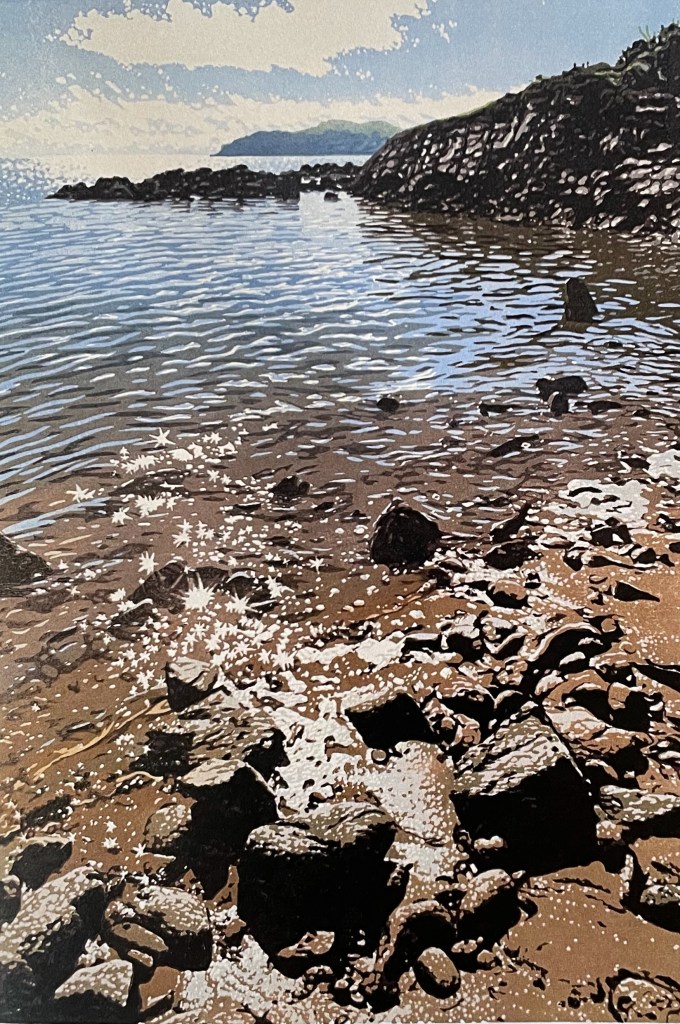 Below is a photo of “Twinkly Sea” A limited edition linocut print, This image perfectly captured the coastline of the trip for us.