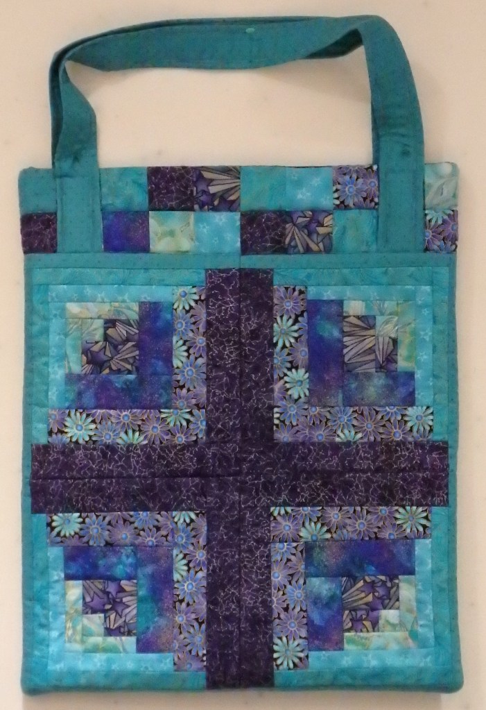 A beautiful kaleidoscope foundation pieced tote bag approximately 18″ x 14″