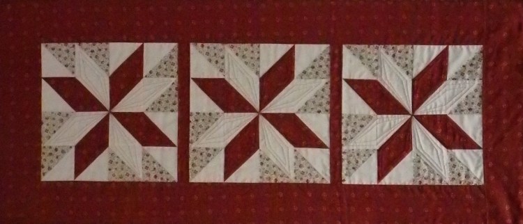 A versatile foundation piecing pattern with rectangular blocks. Instructions for the table runner and placemats are included in the pattern which also included a pattern layout for a quilt.